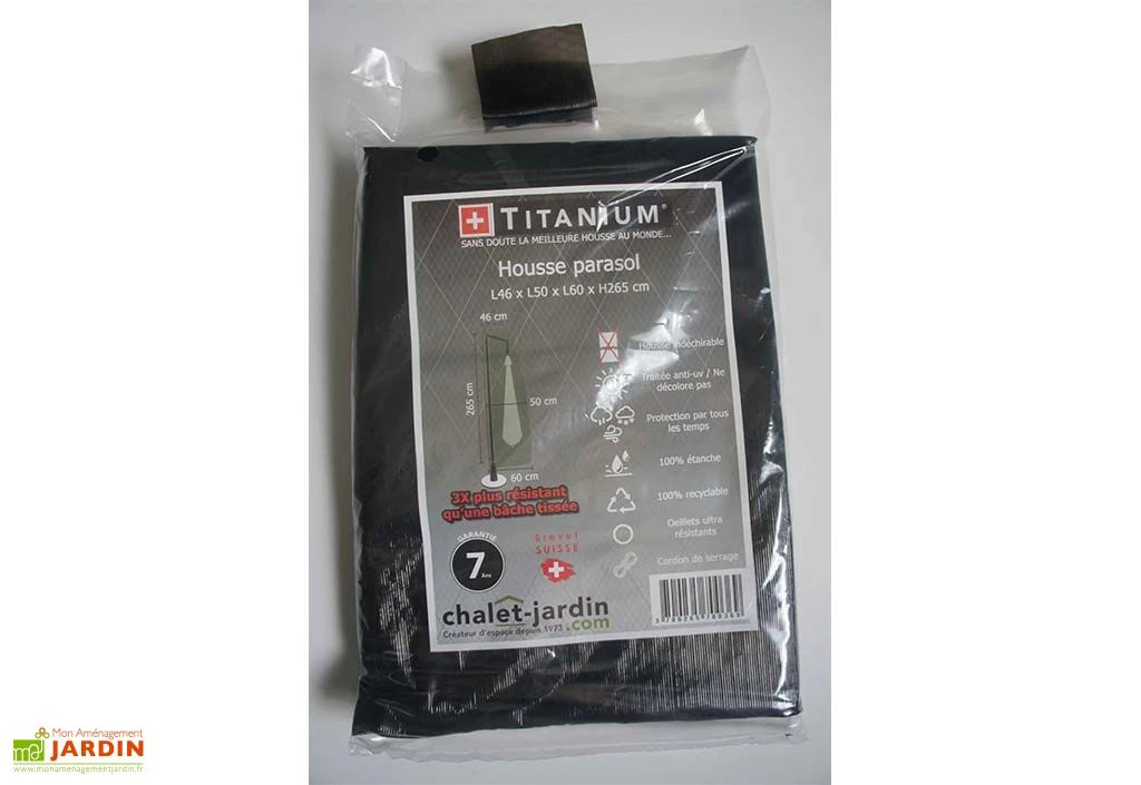 Spécialement conçue pour protéger votre parasol déporté des intempéries, cette housse en polyéthylène de la marque Titanium est à la fois indéchirable, totalement étanche et traitée anti-UV afin d’éviter tout risque de décoloration. Elle mesure 265 cm de haut sur 60 cm en son point le plus large et dispose d’un cordon de serrage, pour un bon maintien une fois positionnée.