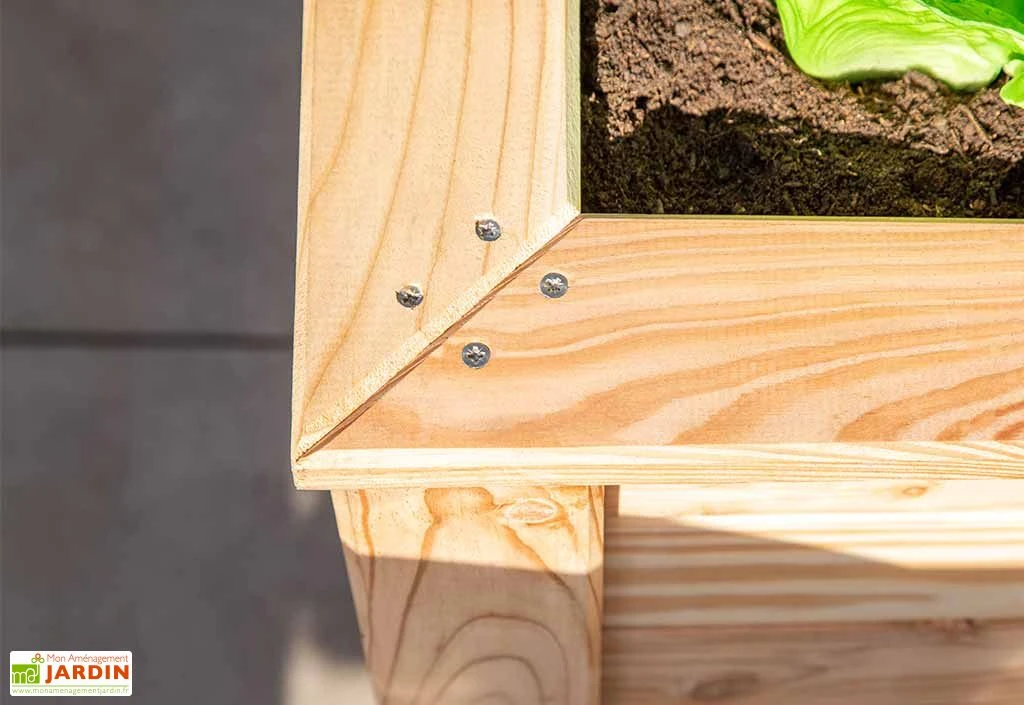 Fabriquée en mélèze, un bois quasi imputrescible, cette jardinière à poser ne craindra ni les intempéries, ni les insectes qui pourraient détériorer le bois. Il est par ailleurs conseillé d’appliquer un saturateur ou une lasure sur le bois afin de préserver son aspect. Le bois utilisé pour sa conception est enfin certifié FSC, ce qui signifie qu’il est issu de forêts gérées de manière écoresponsable.