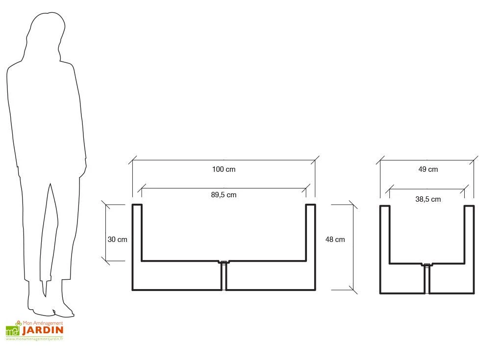 La jardinière en plastique est disponible dans de nombreux coloris. Ses dimensions intérieures sont de 89,5 cm de longueur, 38,5 cm de largeur et 30 cm de hauteur. Elle dispose d’une contenance de 75 litres. La jardinière est respectueuse de l’environnement puisqu’elle est entièrement recyclable. Elle s’utilise aussi bien à l’intérieur qu’à l’extérieur de la maison et peut ainsi s’installer dans le jardin. Elle peut rester dehors toute l’année.