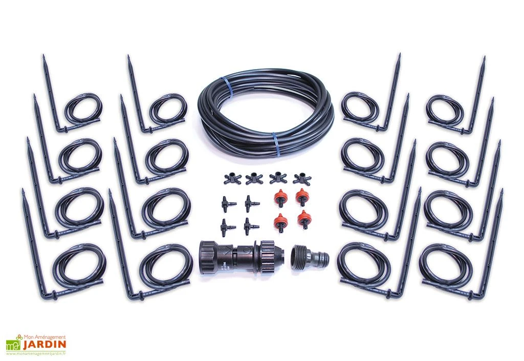 Le régulateur d’égouttement du système d’irrigation crée une dispersion égale de l’eau dans tous les gouttes à gouttes. Le kit d’irrigation comprend 10 mètres de ligne d’égouttement, 16 gouttes à gouttes, un adaptateur de 19 mm et 4 connecteurs T 4/6 mm.