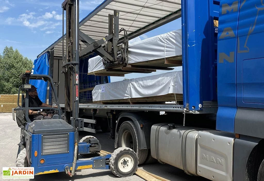 Les lames et les lambourdes sont conditionnées sous forme de colis filmés et cerclés qui seront déchargés devant votre domicile.