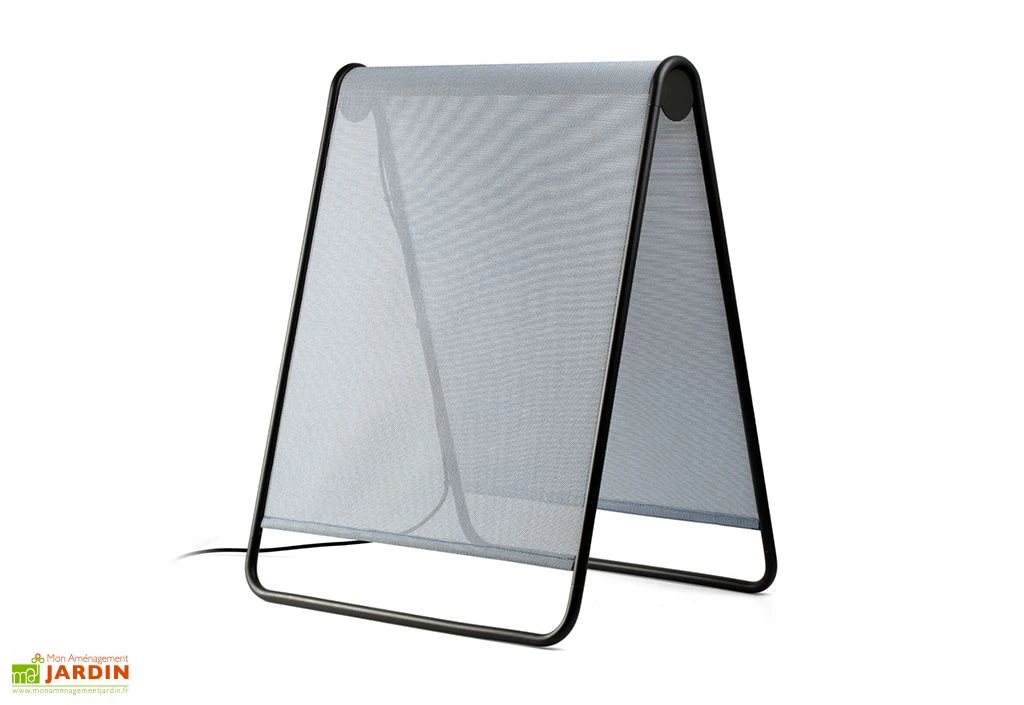 Ce luminaire de jardin au design original vous permettra de profiter d’une source de lumière douce pour vos soirées en extérieur. Il est disponible dans deux coloris au choix, beige ou bleu, et intègre un éclairage LED de 18 W. Son abat-jour en polycarbonate se situe entre deux pans de textilène, le tout étant maintenu par une solide structure en aluminium, totalement insensible à la rouille.