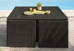 Salon De Jardin 8 Places En Aluminium Et Résine Tressée Océane Noir