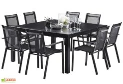 Salon De Jardin BlackSun En Alu Et Verre Trempé : Table + 8 Fauteuils