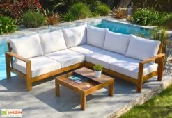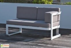 Salon De Jardin En Aluminium Barcelona : 1 Table + 2 Canapés + 1 Pouf