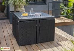 Salon De Jardin En Résine Tressée Encastrable Noir : 1 Table + 8 Fts