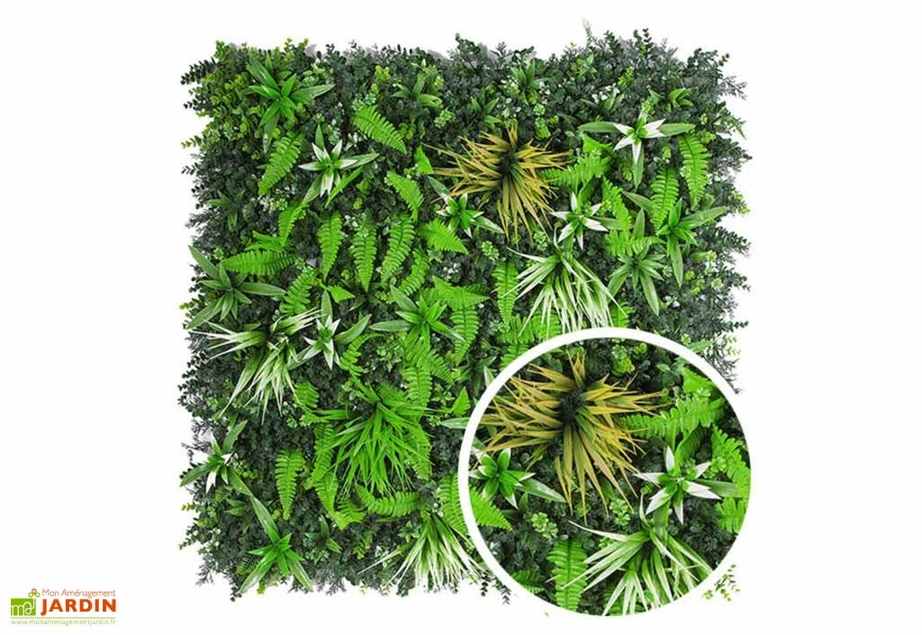 Non-toxique, ce panneau d’environ 4 cm d’épaisseur est conçu pour résister aux averses et aux vents relativement violents, le tout sans demander d’entretien particulier. Les feuillages sont également traités contre les rayons UV afin de réduire le risque de décoloration, même après plusieurs années.