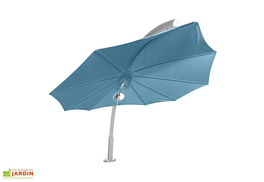Le parasol Icarus de chez Umbrosa est fabriqué en Belgique avec des matériaux haut de gamme : structure en aluminium, baleines en fibre de verre, toile en acrylique épaisse (260 gr/m²). Tous ces matériaux permettent de garantir une longue durée de vie à ce parasol au design original.