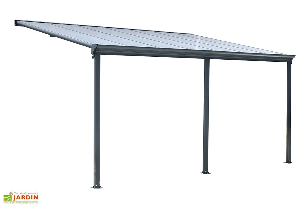 La toiture en polycarbonate gris transparent de cette pergola en aluminium bénéficie d’une épaisseur de 6 mm et d’une protection contre les UV. Elle vous protège ainsi des rayons nocifs du soleil tout en restant elle-même protégée contre la décoloration et la fragilisation.