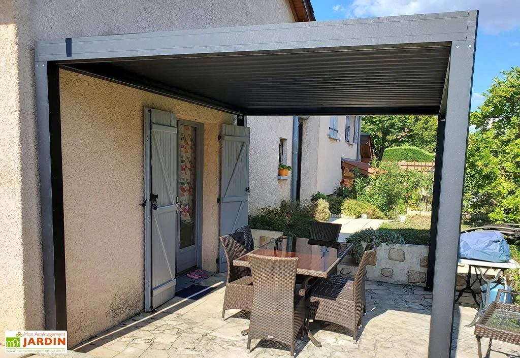 La structure de la pergola bioclimatique est entièrement en aluminium, recouvert d’une peinture noire texturée. L’aluminium est un matériau naturellement insensible à la corrosion. Il est également résistant à la moisissure, au gel et aux insectes et ne vous demandera donc aucun entretien. Les lames orientables qui couvrent la tonnelle sont également en aluminium, coloris gris galet.