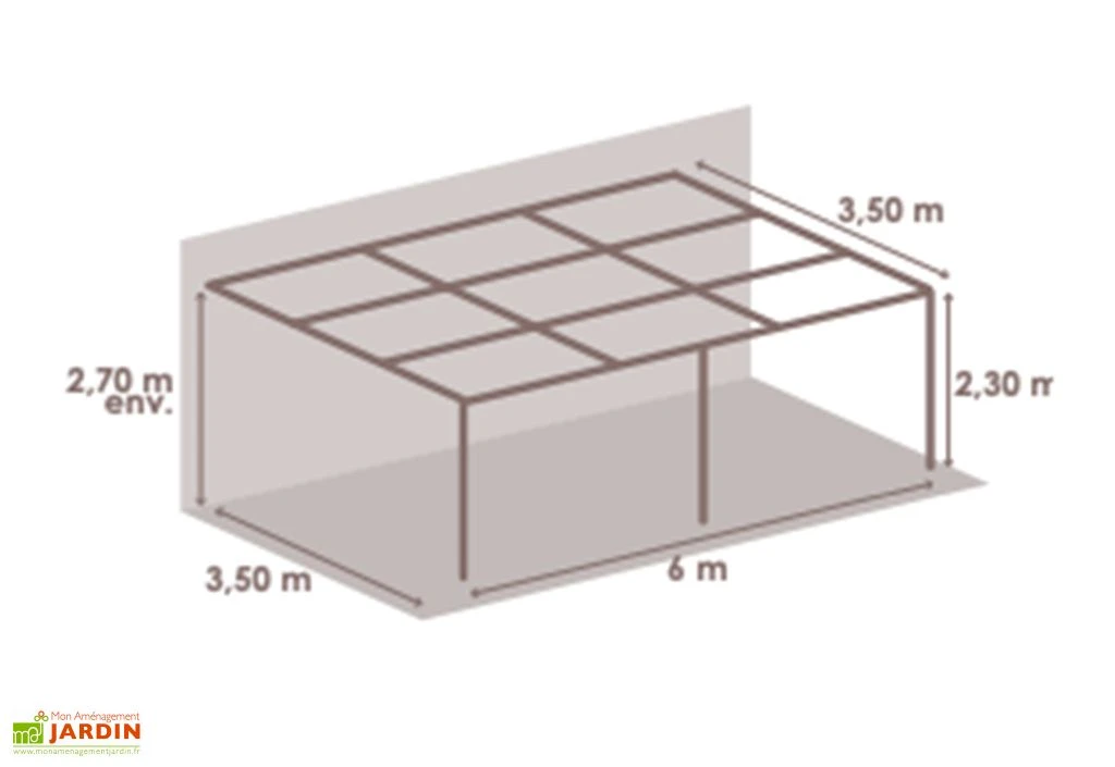 Cette superbe pergola adossée de chez Couleurs du monde arbore un design épuré et classe, ce qui lui permet de s’intégrer facilement à la façade de votre maison, et de s’adapter à tous types de jardins. Avec une largeur de 6 m et une profondeur de 3,5 m, la pergola adossée couvre une surface de 21 m² qui vous offre un grand nombre de possibilités pour son aménagement.