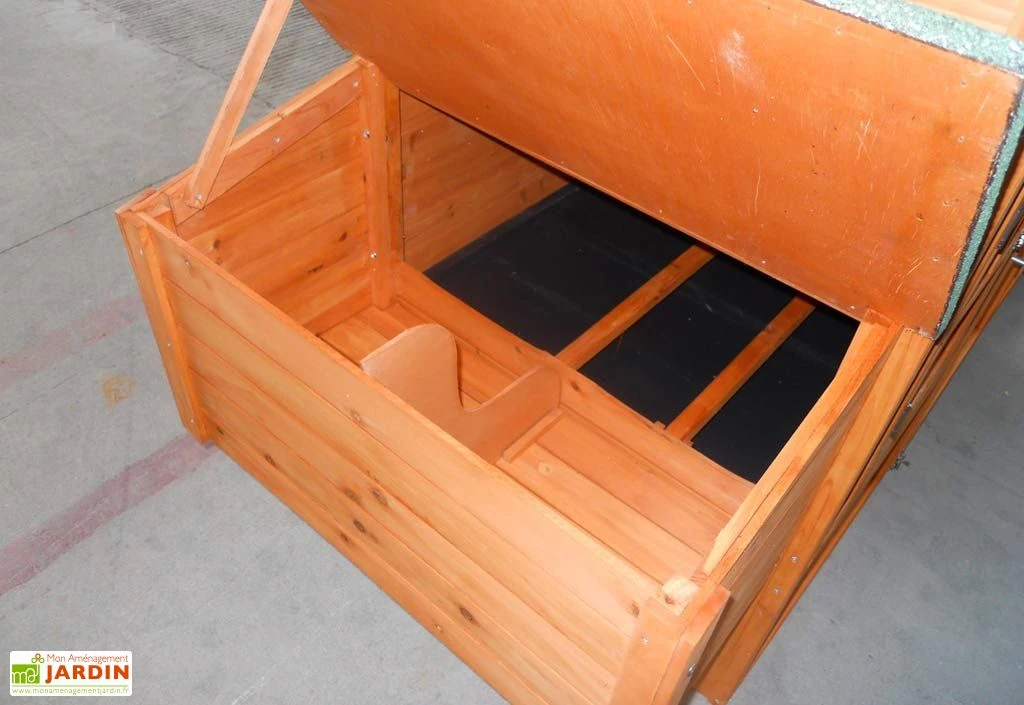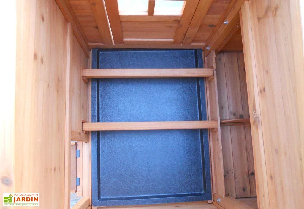 - d’un pondoir de 63 x 32 cm (l,h) à l’avant et 64 x 59 cm (à l’arrière)