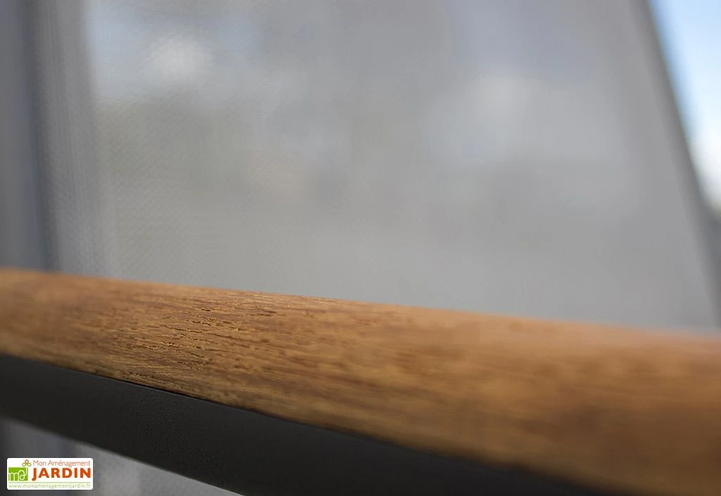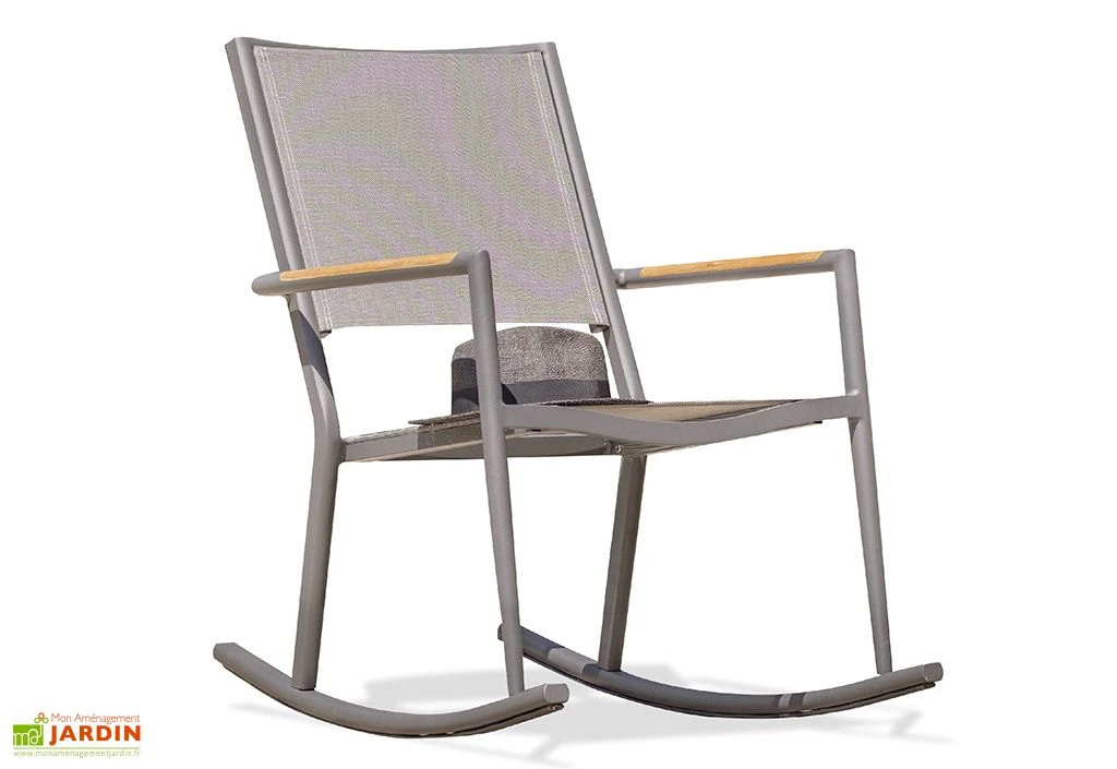 La structure de ce fauteuil à bascule d’extérieur est conçue en aluminium, un alliage solide qui résiste parfaitement à la corrosion. Ce rocking chair de jardin ne craindra donc pas la rouille, et ce même sans entretien. A noter, la présence d’incrustations en teck au niveau des accoudoirs qui complètent à merveille la finition anthracite dont est doté ce siège de jardin aussi confortable qu’élégant.