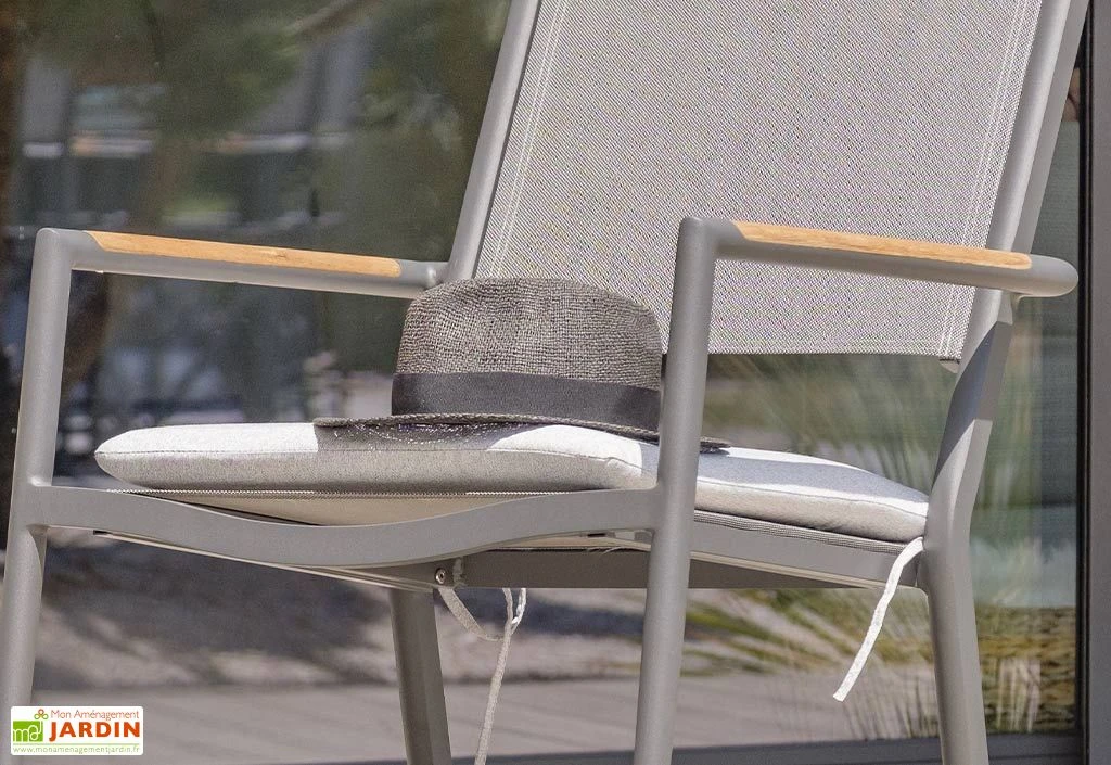 Le rocking chair d’extérieur Honfleur de chez Paris Garden vous permettra de profiter de moments de détente sur votre terrasse ou dans votre jardin. Très confortable, il possède une assise et un dossier en textilène complétés par un coussin de couleur gris clair. Ce rocking chair étant livré en kit, il devra être monté par vos soins. Le coussin d’assise est déhoussable.