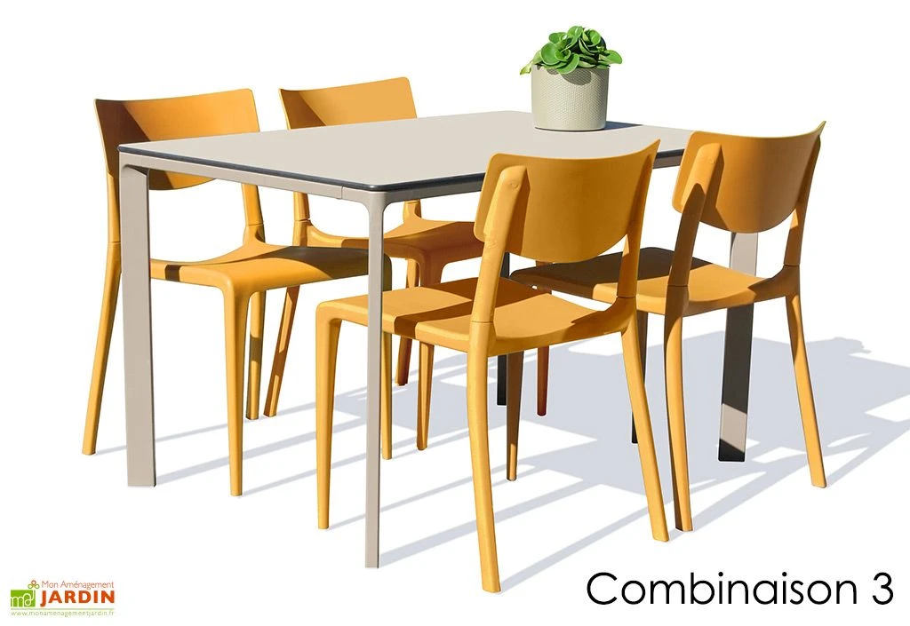 - Combinaison 3 : La table taupe et ses 4 chaises jaune moutarde