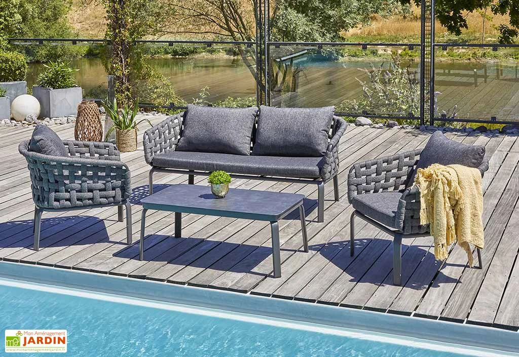 Les divers éléments qui constituent ce salon de jardin bas sont dotés d’une structure en aluminium, ce qui leur confère une grande résistance face à l’humidité et autres agressions extérieures. Ils ne rouilleront pas, et ce sans exiger de traitement ou d’entretien particulier. La légèreté de l’aluminium vous permettra de plus de déplacer facilement votre mobilier de jardin.
