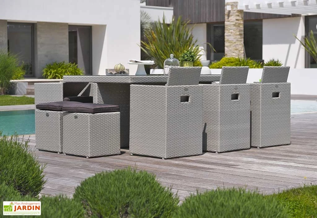 Salon De Jardin En Résine Tressée Encastrable : 11 Pièces, 2 Coloris