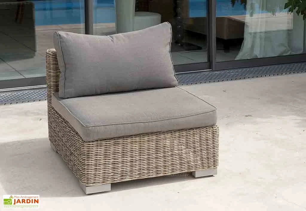 Votre salon de jardin en résine tressée Montmartre de chez Paris Garden est un produit complet qui vous permettra de recevoir jusqu’à 6 convives. La résine est beige et les coussins sont gris. Votre salon est composé d’un fauteuil de 84 x 84 x 65 cm (l,l,h), de 3 modules d’angle de 84 x 84 x 65 cm (l,l,h) chacun, de 2 modules centraux de 76 x 84 x 65 cm (l,l,h) chacun et d’une table basse de 74 x 74 x 32 cm (l,l,h) pouvant également servir de repose pied. Votre ensemble est modulable et peut être personnalisé et adapté à vos besoins. Chaque pièce est équipée d’un coussin d’assise et de dossier déhoussable gris en polyester (à l’exception de la table/repose pied qui ne possède qu’un coussin d’assise). Votre salon est garanti 2 ans.