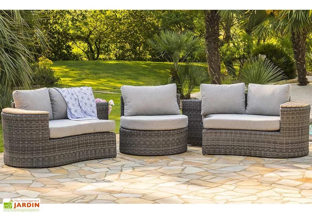 Les différents modules du salon de jardin s’assemblent les uns avec les autres pour former un très grand canapé 5 places par exemple. Ils s’emboitent parfaitement permettant également d’être compact et de prendre peu de place lorsque vous ne vous en servez pas.