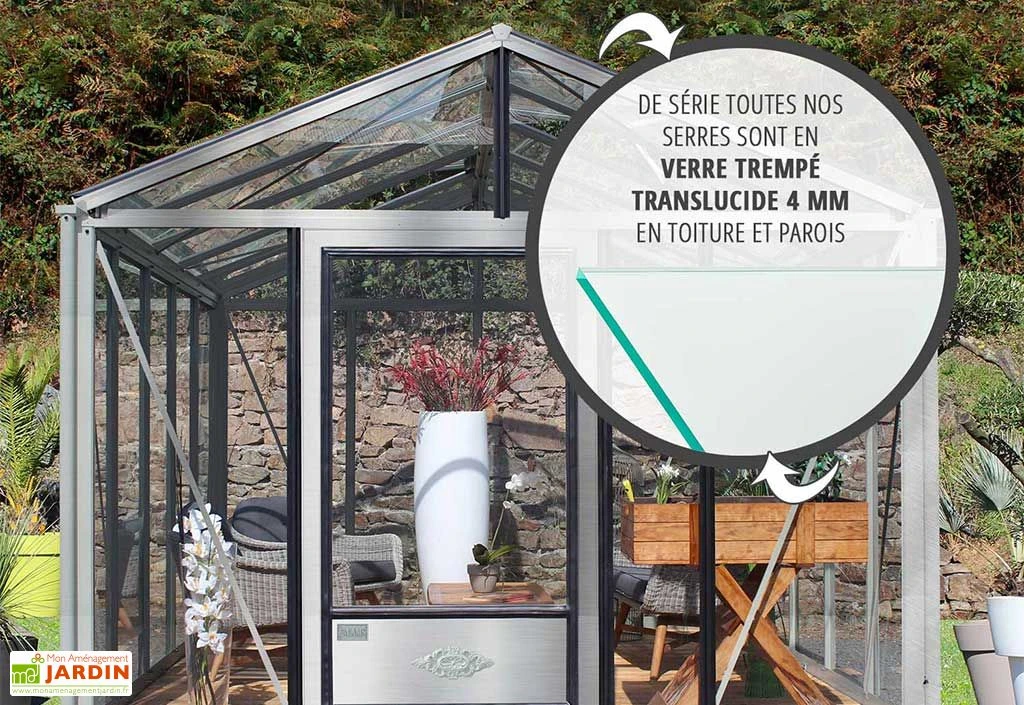 Cette serre en aluminium est donc dotée de parois en verre trempé de 4 mm d’épaisseur. L’avantage du verre trempé repose sur sa solidité et sur le fait qu’il se casse en petits morceaux non coupants en cas de bris. Il est donc en ce sens plus sûr que le verre horticole et permet par ailleurs une parfaite transmission de la lumière car totalement transparent. Vos cultures profiteront donc d’une belle exposition, la lumière étant un facteur déterminant dans le bon développement des végétaux.