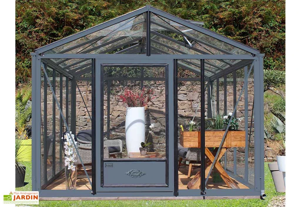 Cette serre vous est proposée dans différentes finitions : aluminium naturel, aluminium laqué anthracite (RAL 7016) ou vert (RAL 6009). D’autres coloris sont également disponibles sur demande (sélectionner « Autre coloris » au moment de passer commande et nous contacter pour nous indiquer le RAL choisi).