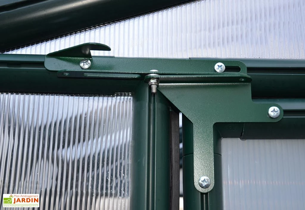La serre en polycarbonate est livrée en kit et se monte facilement grâce à des profils uniformes et à des connecteurs qu’ils suffit d’emboiter. Elle bénéficie d’une garantie de 7 ans.