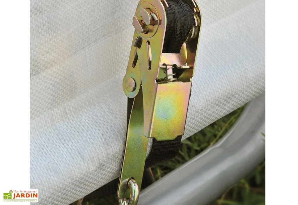 La serre est étudiée pour se démonter et de remonter plusieurs fois par an sans se détériorer. Elle est mobile et démontable mais n’en reste pas moins particulièrement solide et stable. Elle est fournie avec des sangles d’arrimage et des piquets offrant une bonne résistance au vent. L’installation est rapide.