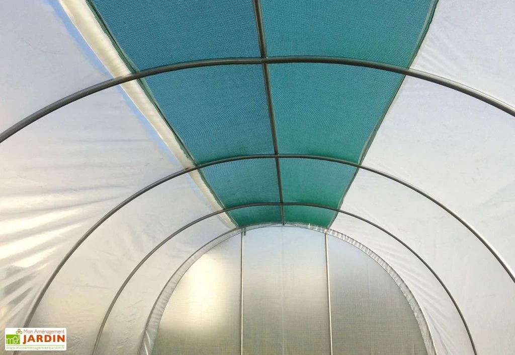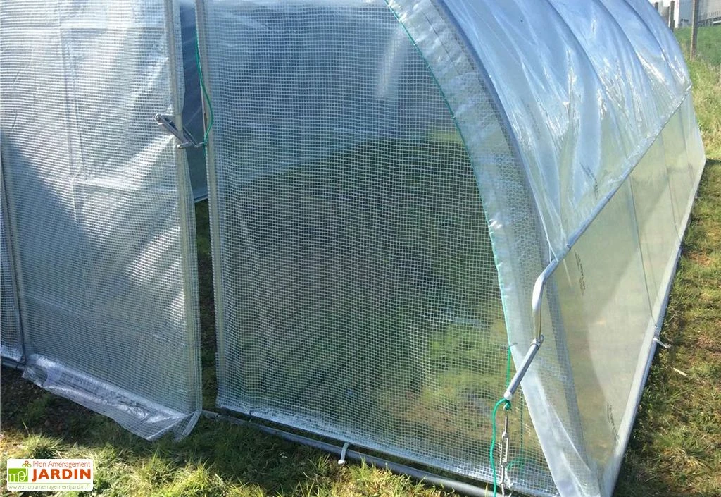 Fabriquée en France par l’entreprise Tonneau, cette serre de jardin est équipée d’un filet sur toute la longueur du toit qui permet d’aérer l’intérieur et d’arroser les semis avec de l’eau de pluie naturelle. Le déroulement d’une bâche à l’aide d’une manivelle va vous permettre de condamner le faîtage. La porte de 1 m de large peut aussi être habillée d’un filet (fourni) afin de créer une ventilation accélérée à l’intérieur de la serre.