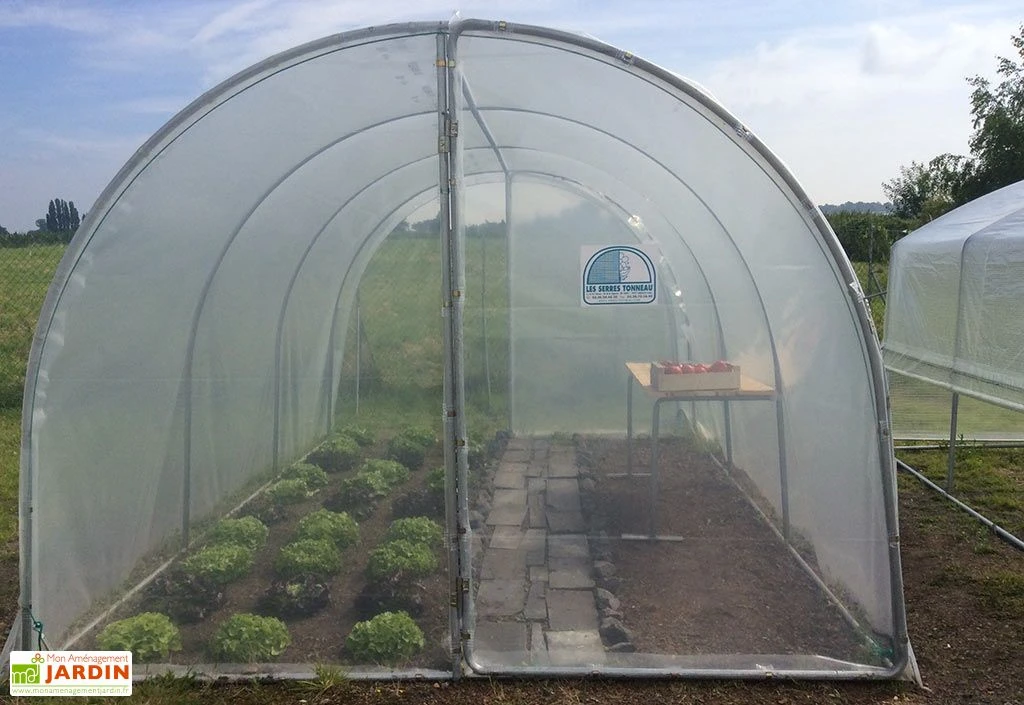 La serre tunnel dispose d’une structure en acier galvanisé. Les tubes mesurent 30 mm de diamètre et 1,5 mm d’épaisseur. Il existe un écartement de 1,5 m entre chaque arceau pour un maintien et une tenue parfaite de la structure. De plus, la serre dispose d’une embase sur tout le périmètre. L’armature est assemblée par croix en acier galvanisé de 2 mm d’épaisseur. La serre se fixe au sol par enfouissement de la bâche sur 1 m de chaque côté.