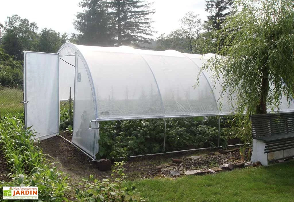 Cette serre tunnel de chez Tonneau est en polyéthylène transparent de 200 microns d’épaisseur. Son armature en acier galvanisé lui garantit une longévité importante. Dans vos options vous pouvez choisir une serre sans aération ou une serre avec aération (kit manivelles inclus pour l’option aération). Lorsque vous choisissez l’option aération, la serre est équipée d’une ventilation de côté jusqu’à 70 cm. La serre dispose d’une porte pivotante d’une largeur de 1,35 m, il est possible d’en ajouter une deuxième en accessoire.