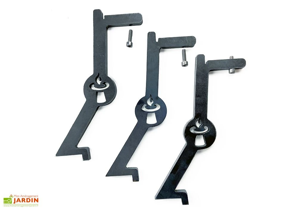 Ce jeu de trois pieds en acier est spécialement conçu pour fixer le fumoir pour brasero Remundi à la plaque de chauffe. Il est disponible dans deux tailles différentes, en fonction de celle de votre brasero de jardin (M ou L).