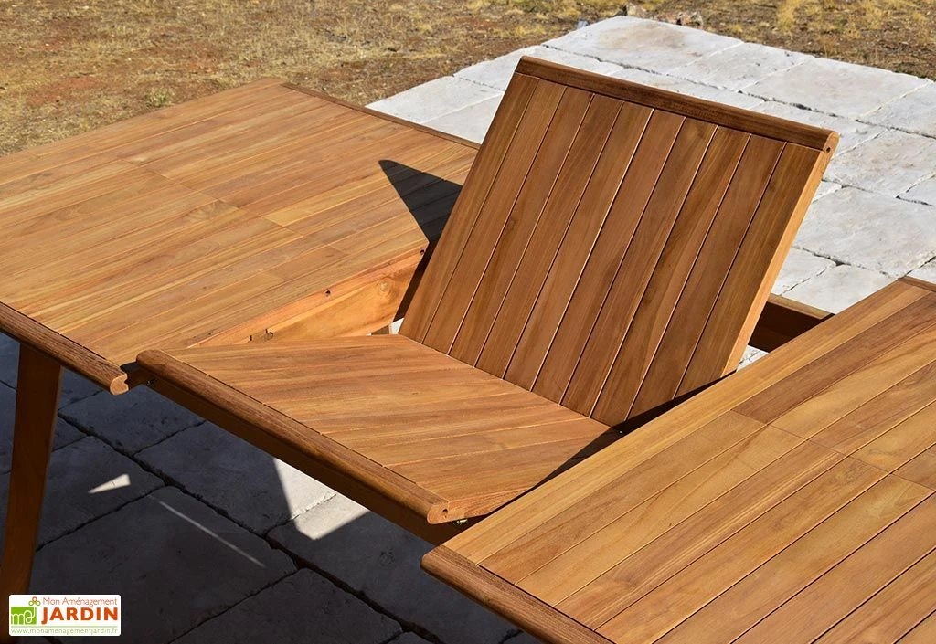 La table de jardin extensible Tahiti de chez Givex est entièrement fabriquée en teck massif, un bois naturellement résistant à l’humidité, aux champignons et aux intempéries. Le bois utilisé est même certifié 100% FSC, ce qui signifie qu’il provient de forêts gérées de manière durable et responsable.