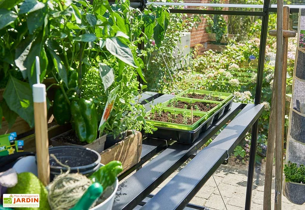 Cette grande table en aluminium affiche des dimensions de 64 x 306 cm, pour 9 cm d’épaisseur. Vous bénéficierez ainsi d’une belle surface pour la préparation de vos semis, entre autres. Notez enfin que cette table revêt une finition laquée de couleur noire et qu’elle ne rouillera pas, l’aluminium étant naturellement insensible à la corrosion.