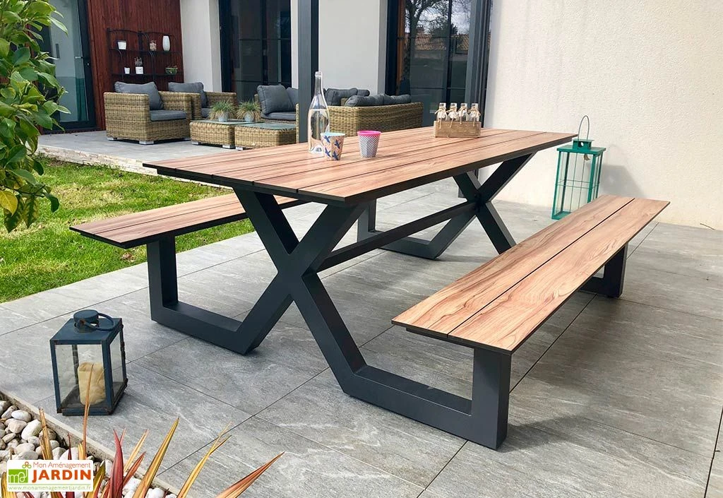 La table de pique-nique Vancouver de chez Paris Garden est idéale pour ajouter une touche d’originalité à votre extérieur. Bien qu’entièrement fabriquée en aluminium, cette table de jardin s’est vue dotée d’un plateau et de bancs en HPL imitation bois. Vous aurez alors l’impression d’être face à une authentique table de pique-nique forestière, les inconvénients du bois en moins.