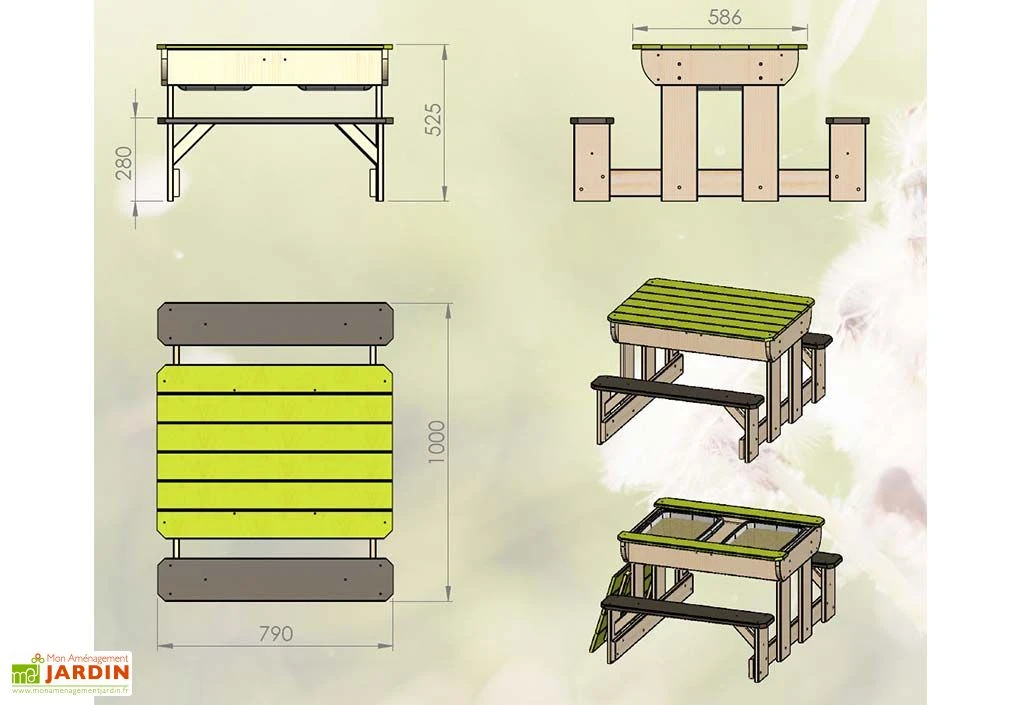 Cette table de pique-nique pour enfant signée Wendi Toys intègre deux bacs amovibles qui pourront être aisément remplis de sable et d’eau afin de transformer le tout en véritable table de jeux d’extérieur. Ces bacs en plastique sont dissimulés sous un couvercle qui, une fois positionné, fera office de plateau pour que vos enfants puissent manger, dessiner ou jouer sur la table.