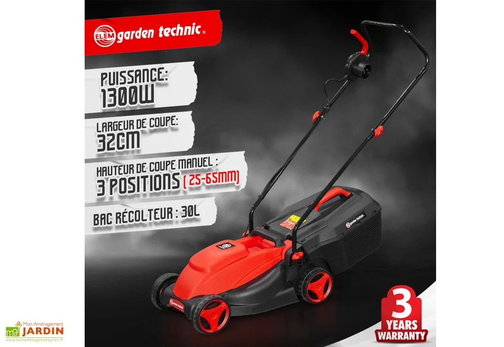 Efficace et facile à manier, la tondeuse électrique que comprend cet ensemble est dotée d’un moteur d’une puissance de 1300 W. Elle dispose d’une lame de 32 cm et d’un système de réglage manuel permettant d’ajuster la hauteur de coupe selon trois positions, entre 25 et 65 mm. Son carter en polypropylène lui assure légèreté et longévité tandis que son bac récolteur de 30 L se chargera de collecter l’herbe tondue.