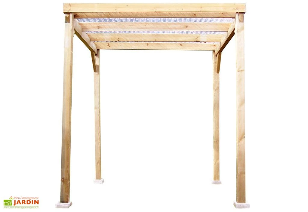 Votre carport en pin traité autoclave FSC permet le rangement de vos petits véhicules ou équipement de jardin. Elle permet également de servir de tonnelle. Facile à monter, cet abri mesure 2,00 x 2,00 x 2,10 m (l,l,h). La toiture est constituée de chevrons équidistants de 49 cm à recouvrir avec les plaques de PVC incluses. Le bois est traité autoclave, c’est-à-dire qu’il ne craint pas la moisissure ni les insectes et ne demande aucun entretien. Les 4 poteaux de 9 x 9 x 210 cm permettent de maintenir solidement la structure. La livraison est en kit, à monter soi-même. Toutes fournitures de montage et notice en français.
